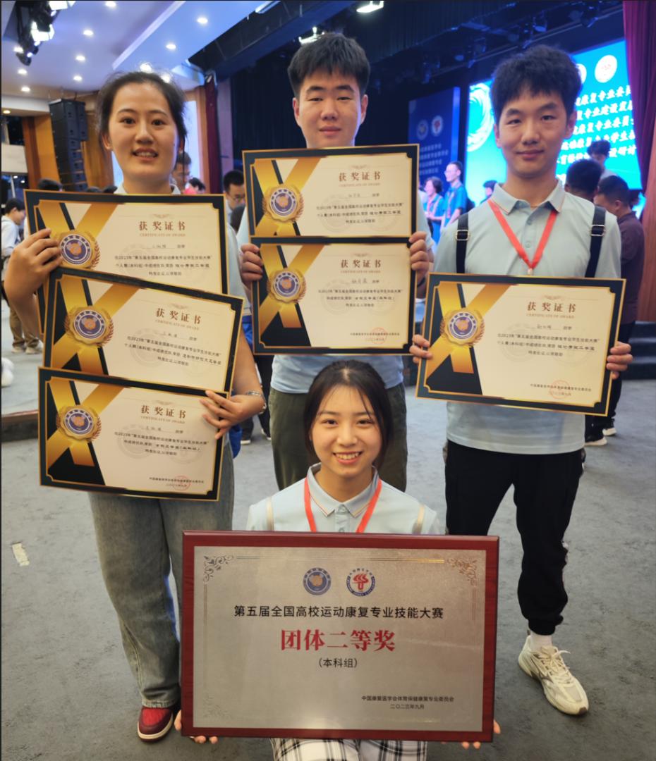 经过两天紧张而激烈的比赛,由运动健康学院运动康复专业师生组成的代表队斩获大赛团体二等奖,并获得8项个人单项奖,实现了比赛成绩新的突破。其中王淑祺同学荣获个人理论考试二等奖,运动防护技术项目、个人全能项目三等奖,张守淙同学荣获个人理论考试二等奖,个人全能项目三等奖,郗向辉同学荣获个人理论考试二等奖。高海宁、甄希成、潘斯腾分别获得优秀指导教师称号。