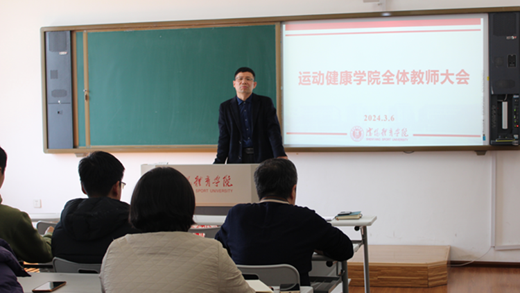 为进一步统一思想,促进新学期各项工作有序开展,落实好各项工作任务,3月6日,运动健康学院在科技楼413教室召开新学期全体教职工大会,二级学院班子成员及全体教职工参加会议,会议由办公室主任郭鹏主持。