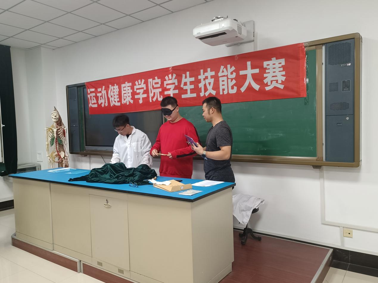 为进一步巩固专业知识、提升专业技能,6月4日晚,运动健康学院学生技能大赛之摸骨比赛在科技楼举办。运动健康学院党总支书记王立东、党总支副书记邵立国、副院长高海宁及运动解剖力学教研室主任娄彦涛现场观看比赛。
