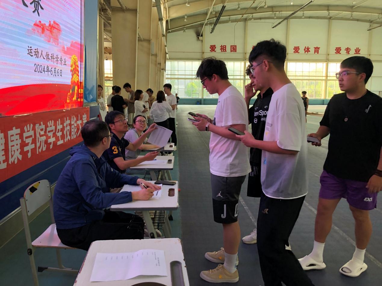 为进一步提升学生实践能力,实现专业技能培养目标, 6月6日,运动健康学院在田径馆组织开展学生技能大赛之运动机能测试与评价比赛。本次比赛由运动生化教研室承办,经过精心准备与筹划,共有40名运动人体科学专业学生分成10个小组参加比赛。运动健康学院副院长高海宁教授、运动生理生化教研室党支部书记、主任郭峰教授现场观看比赛。