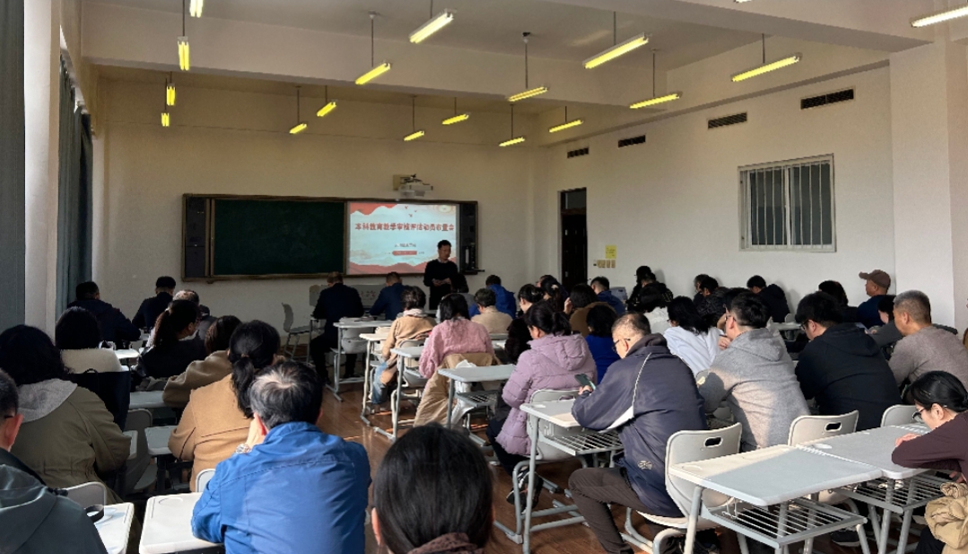 院长赵洪朋围绕评估工作的时间节点与核心任务作出具体部署。他要求全体教师提前对教学材料、教案等进行系统梳理与查漏补缺,做好教学材料提交的前置规划。同时,要深入学习掌握学校发展概况及自评报告核心内容,确保在专家访谈、座谈及现场考察过程中做到应答清晰、规范准确。