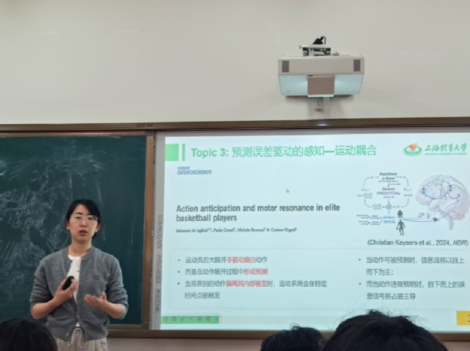 作为上海市曙光学者,陆颖之教授长期深耕于运动员动作预判的认知神经机制研究领域。本次讲座,她系统梳理了团队近年来的系列新发现,并就相关研究方法论展开了深度分享与反思。