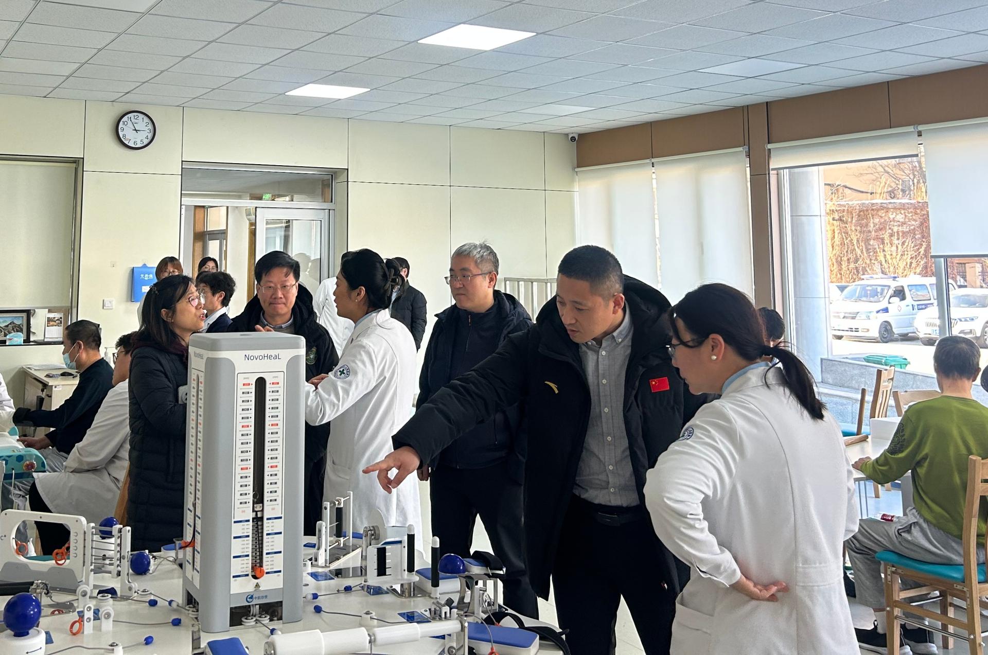 在傅志坚副院长的带领下,学院一行参观了医院的现代化医疗设施与特色诊疗区域。作为神经疾病诊疗领域的优势单位,沈东院区始终致力于推动科研技术向高、精、尖方向发展,积极构建特色鲜明的康复诊疗体系,为体医融合实践与科研提供了扎实的临床基础。