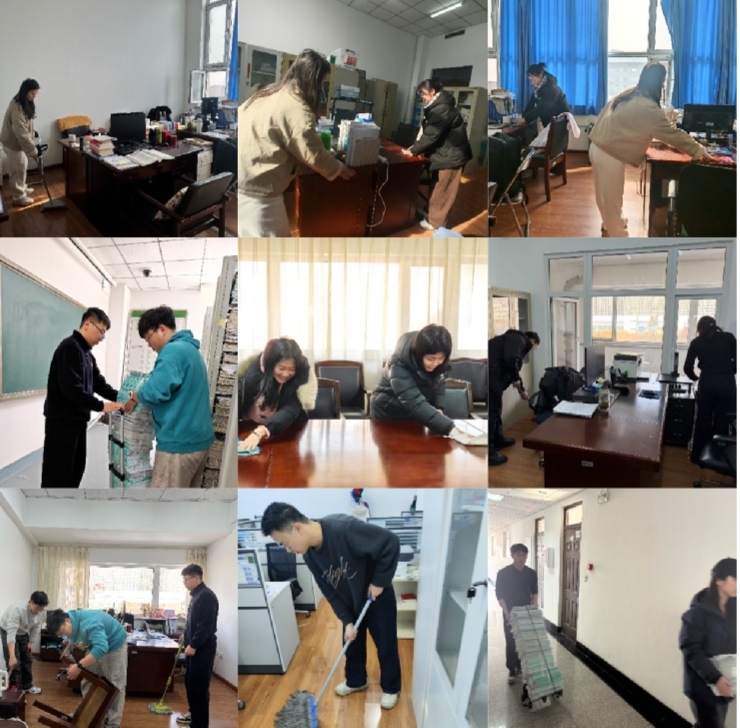 活动当天,全体党员佩戴党员徽章,准时集合、有序分工,以饱满的精神状态投入各教研室的环境清洁工作中。大家分工协作、认真细致,对教研室地面、桌面、资料柜及卫生死角进行了全面清扫与整理。一个个忙碌的身影,一件件贴心的举动,既美化了教学环境,也传递了学生对教师的敬爱与感恩,让春日的教研室内外焕然一新、暖意融融。