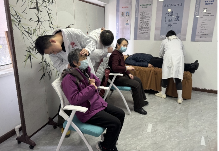 活动现场,志愿者们精神饱满、服务细致,为前来体验的社区居民提供颈肩放松、肌肉舒缓、穴位按压等便民健康服务。作为学院“跃动健康——青年说”宣讲团成员,志愿者们结合居民日常健康管理需求,耐心讲解日常保健知识、科学放松技巧和居家锻炼方法。针对老年人常见的颈肩腰腿不适等问题,现场示范简单实用的舒缓动作,引导居民树立科学健康的生活理念。志愿者们用专业手法缓解疲劳不适,以真诚交流拉近彼此距离,赢得了社区居民的一致好评,也充分展现了扎实的专业素养和积极向上的精神风貌。